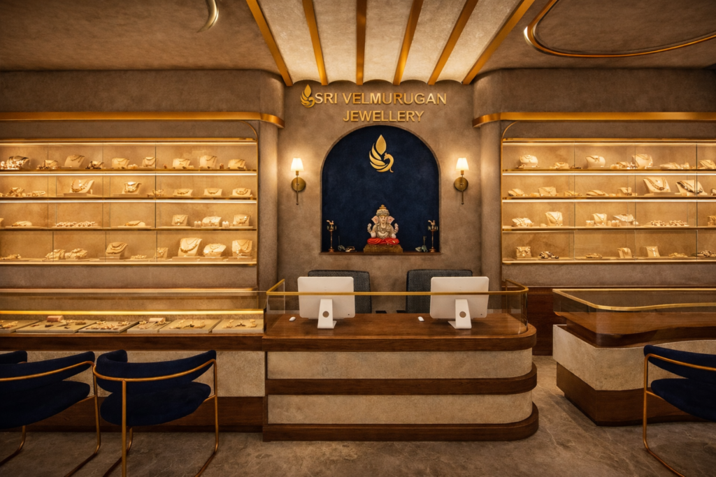 When Sri Velmurugan Jewellery approached us at Good In Architects & Interiors, the brief was clear yet powerful: create a premium showroom that reflects tradition, confidence, and timeless luxury — while being functional, secure, and welcoming for customers in Komarapalayam