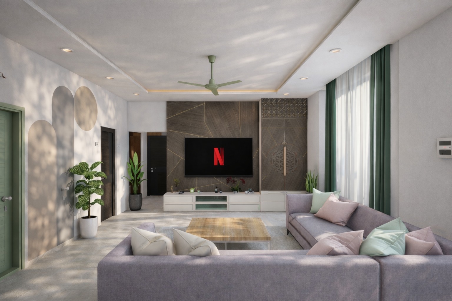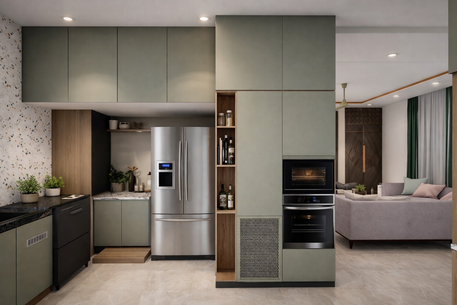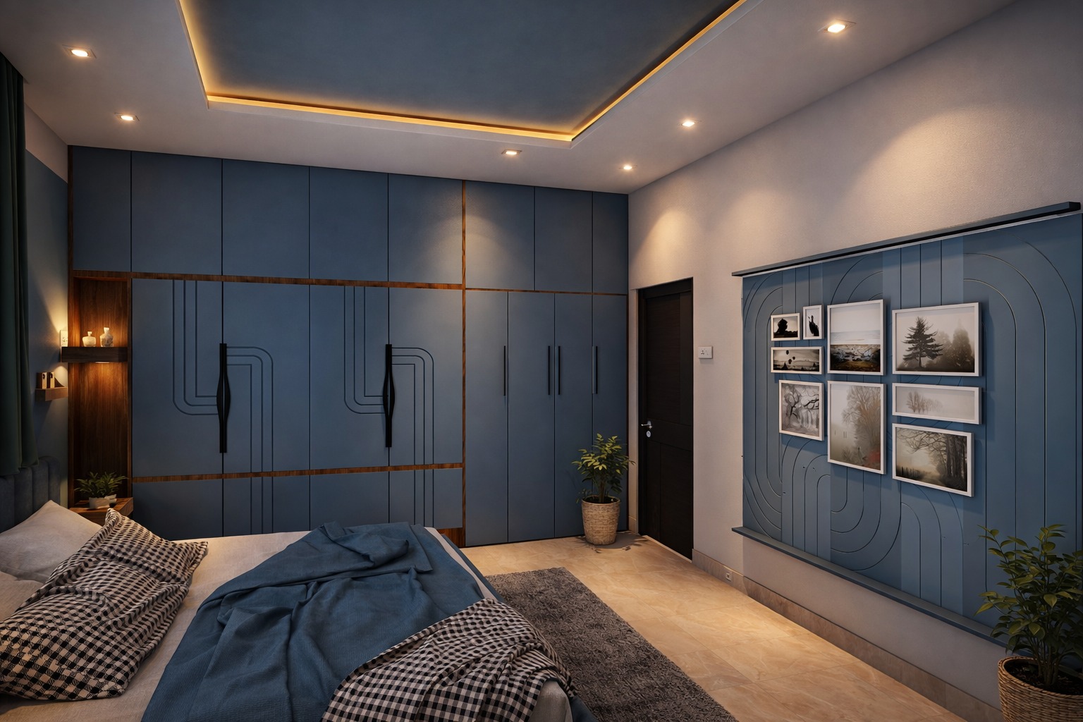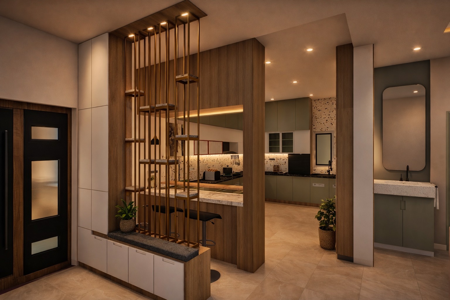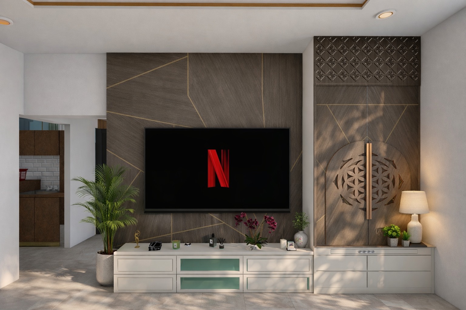 A contemporary residential interior project designed for a 3BHK home with a focus on space optimization, comfort, and modern aesthetics. The design features customized furniture, coordinated finishes, and thoughtful lighting to create a stylish and functional living environment.