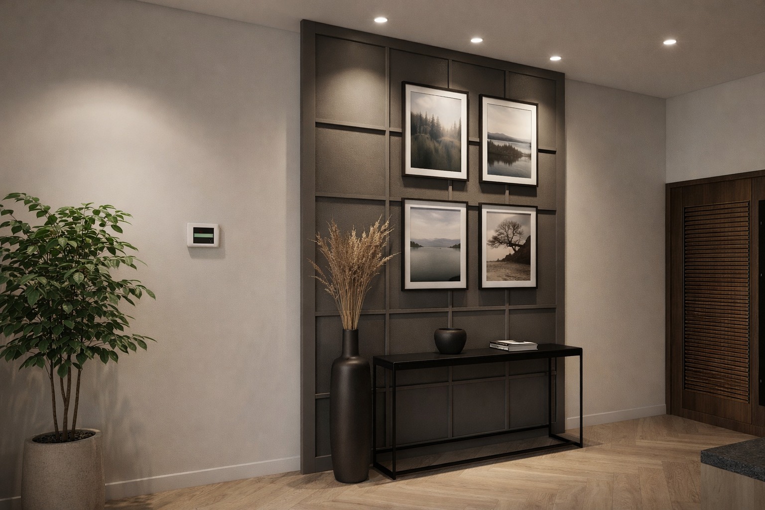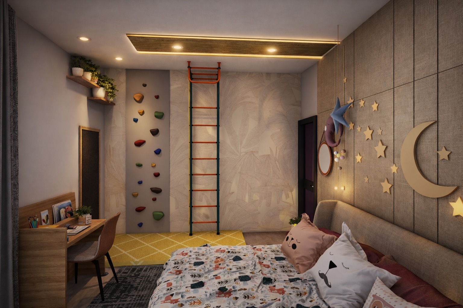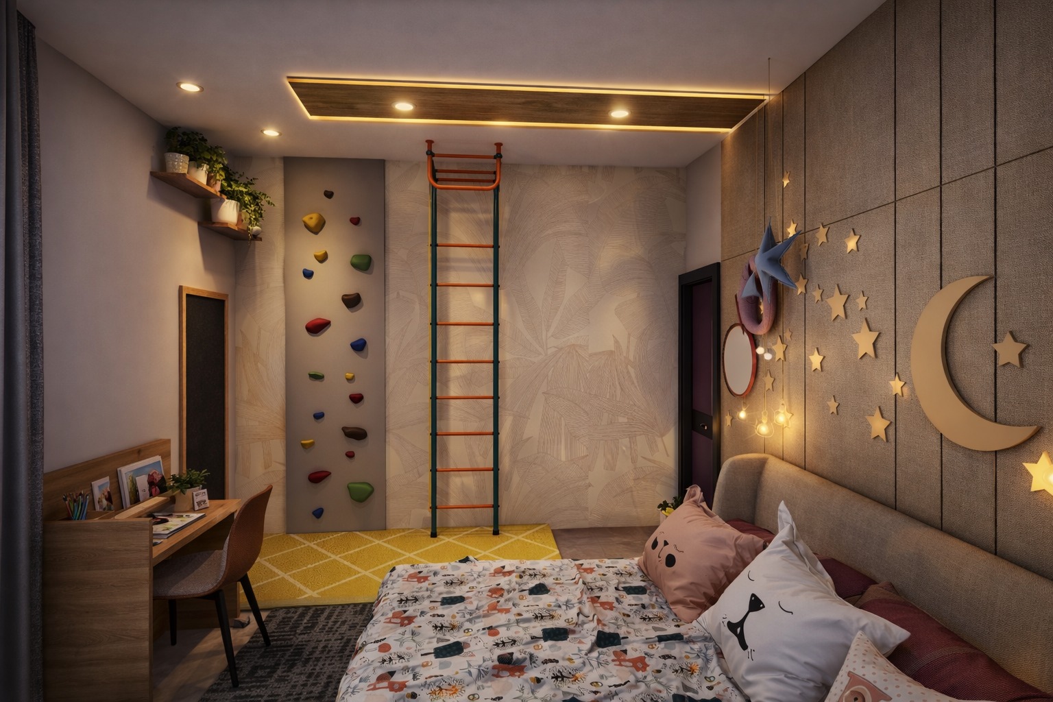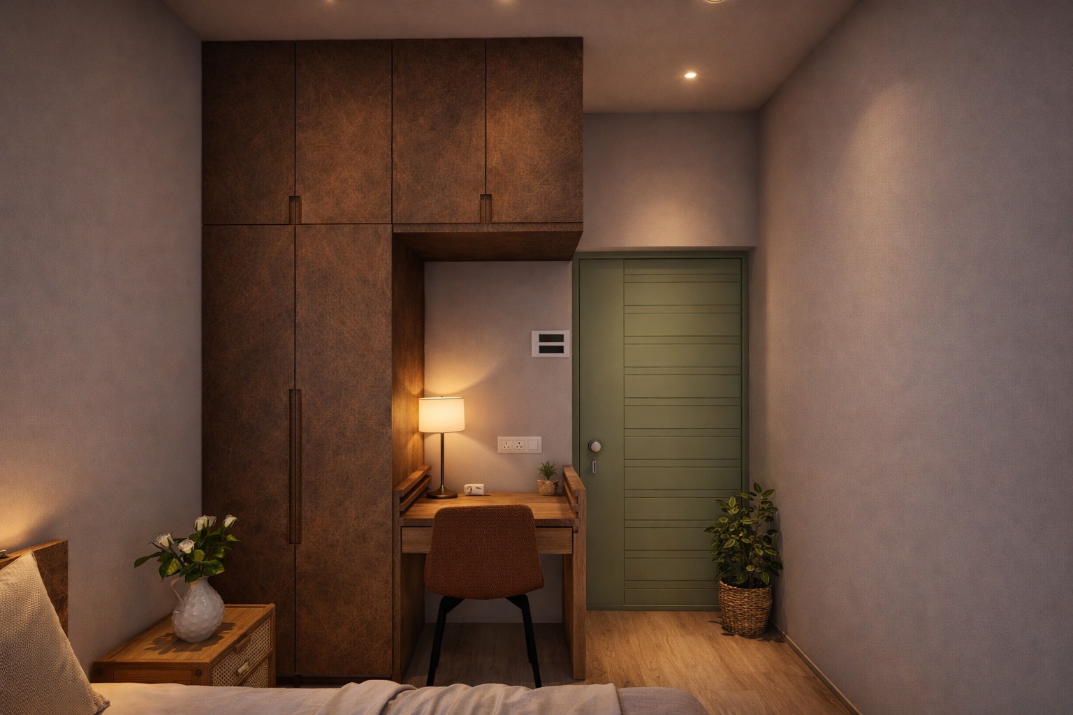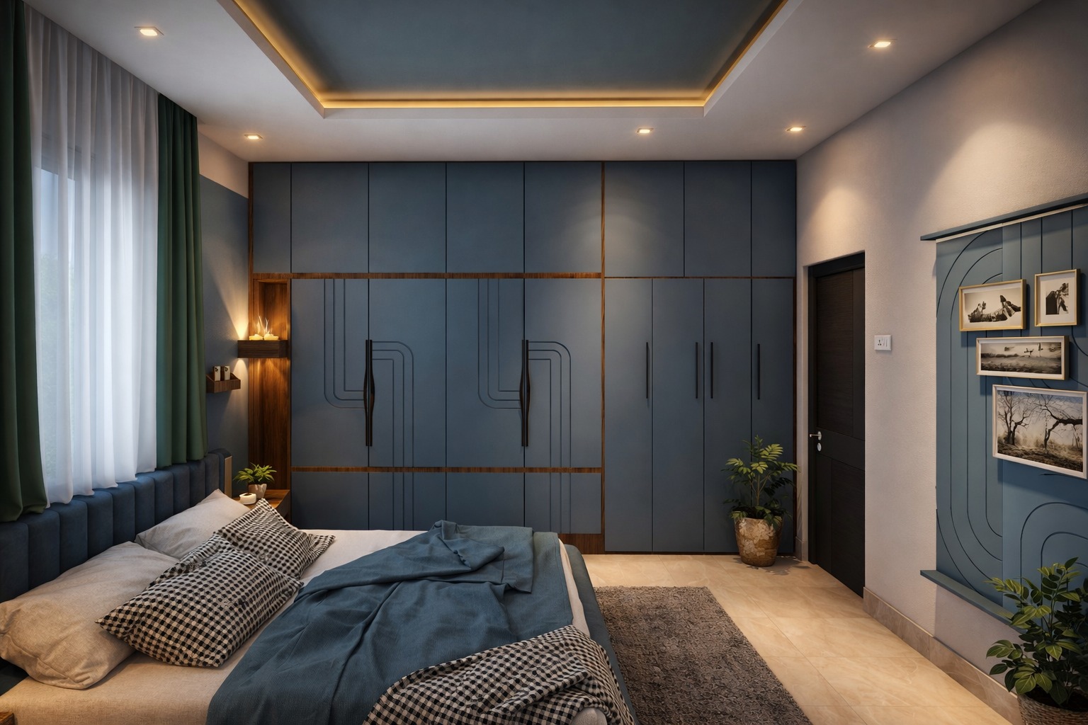 A contemporary residential interior project designed for a 3BHK home with a focus on space optimization, comfort, and modern aesthetics. The design features customized furniture, coordinated finishes, and thoughtful lighting to create a stylish and functional living environment.