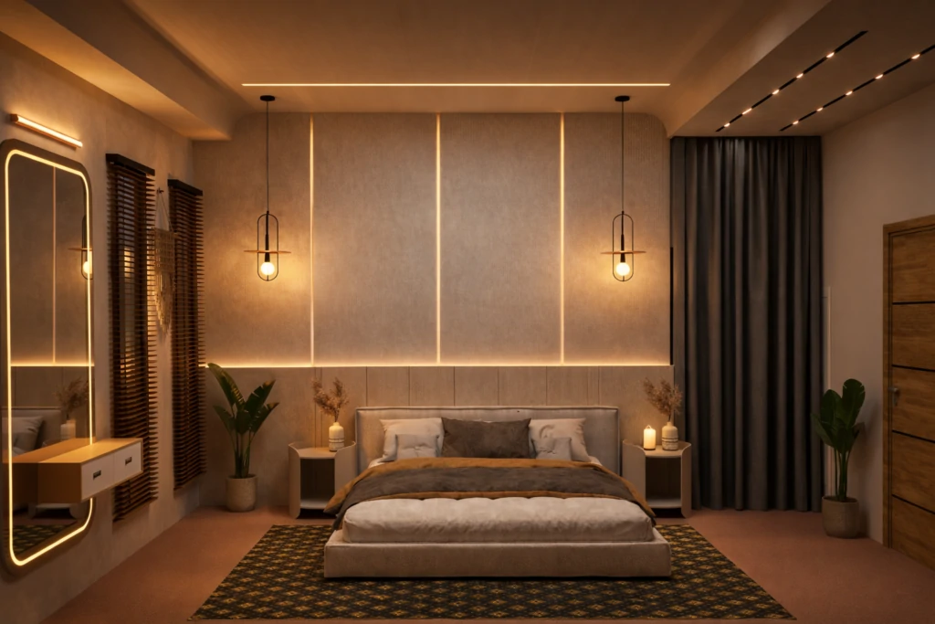 A contemporary residential project designed with a focus on functionality, aesthetics, and natural light. The scope includes architectural planning, site coordination, interior design, 3D interior renders, and elevation development. The residence reflects a modern style with well-planned spaces, quality materials, and elegant finishes tailored to the client’s lifestyle.